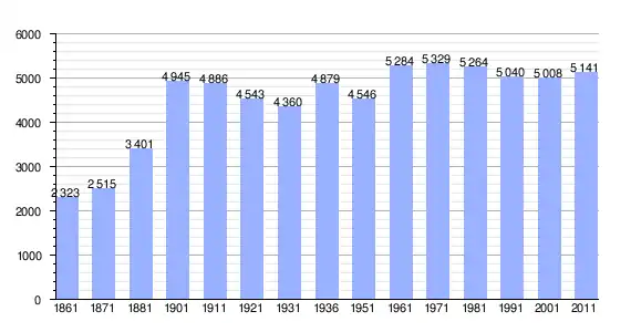 | Variação demográfica do município entre 1861 e 2011[3] |