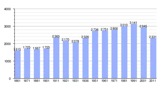 | Variação demográfica do município entre 1861 e 2011[3] |