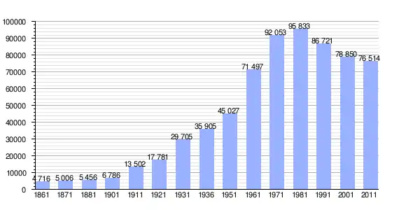 | Variação demográfica do município entre 1861 e 2011[3] |
