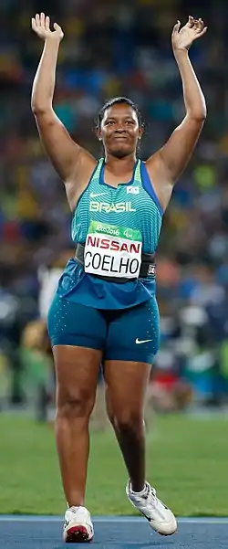 - «Porta-bandeira do Brasil, Shirlene Coelho leva ouro no lançamento de dardo». UOL. 10 de setembro de 2016. Consultado em 10 de setembro de 2016