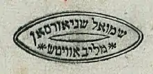 ![]() "Shmuel Schneerson *de Lubavitch*" escrito no seu selo | |