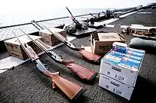 Em Portugal os termos espingarda e caçadeira referem-se a tipos de armas diferentes: espingarda é uma arma que usa balas com o objetivo de fazer um tiro preciso, enquanto as caçadeiras usam cartuchos com chumbo que ao ser disparado lança os chumbos numa trajetória em forma de cone para atingir uma área dispersa (razão pelo que são usadas na caça).