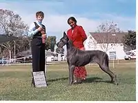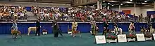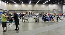 Cães competem no show de conformação para ganhar pontos ou certificação de títulos de campeão.