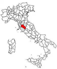 Faz fronteira a norte com a província de Florença, a nordeste com a província de Arezzo, a este com a região da Úmbria (província de Perugia e província de Terni), a sul com a região do Lácio (província de Viterbo) e com a província de Grosseto e a oeste com a província de Pisa.[1][2][3]