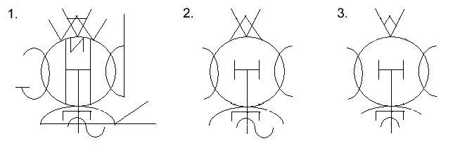 Esquema rústico para exemplificar a construção do sigilo. (Este exemplo é para a frase "Quero ingressos para o show de Rock do dia 27".)