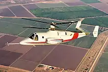 ![]() O modelo de base XH-59 (S-69) que fundamentou o projeto do S-97 | ![]() Detalhe da cauda do mockup do S-97 mostrando a configuração incomum com uma hélice propulsora. |