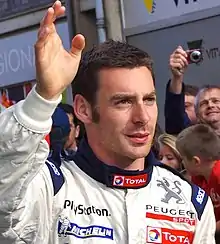 ![]() Pagenaud durante o desfile de pilotos nas 24 Horas de Le Mans de 2011. | |