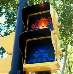 Podendo ser intermitente quando são dois sinais, ou perene quando é uma única lâmpada, sempre sendo uma luz amarela.