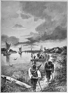 Die Gartenlaube (1890) (O jardim do terraço) - cena retratando balsa levada à sirga