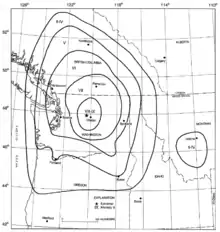 | VI (bastante forte) | Nicola Valley, BC, Olympia, WA | |