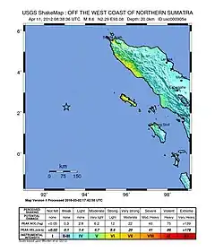 O tremor ocorreu em uma quarta-feira, 11 de abril, às 15h38, hora local. Alertas de tsunami que foram emitidos pelo Oceano Índico porém já foram rebaixados ou cancelados.[2]