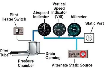 O sistema de instrumentos Pitot Estático utiliza o princípio do gradiente de pressão. Ele funciona ao medir a pressão, ou a diferença de pressão, utilizando estes valores para medir a velocidade e altitude.[1] Estas pressões podem ser medidas tanto de uma tomada estática (pressão estática) como de um Tubo de Pitot (pressão de Pitot). A pressão estática é utilizada em todas as medidas, enquanto que a pressão de Pitot é usada apenas para determinar a velocidade.