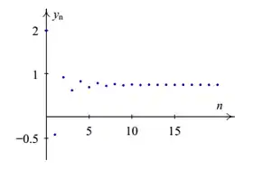 Por exemplo, no exemplo ao lado, usando a variável temos com valor inicial Obtemos o gráfico de evolução dos primeiros 20 termos: