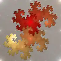 Ou seja, 3 cópias do conjunto inicial são feitas, na metade do tamanho, cada uma se posicionando em um dos extremos de um triângulo, deixando o centro do triângulo livre.