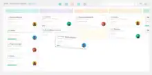 - Kanban: É uma das ferramentas mais utilizadas para gestão de tarefas e projetos. Palavra de origem japonesa, que pode ser traduzida como “cartão” ou “sinalização” e representa um sistema que objetiva aumentar a eficiência da produção de uma empresa, em resumo, é uma forma de registrar tarefas e ações por meio de simbologias visuais. A aplicação mais comum nos dias de hoje é por meio de um quadro branco divido em três etapas (a fazer, fazendo e feito). Ao invés de fazer a organização por simples post-its ou um quadro branco, muitos softwares já trazem a representação do kanban para facilitar a visualização das atividades.
