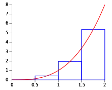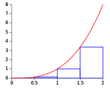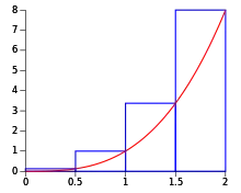 Tomado um exemplo, a área sob a curva de y=x2 entre 0 e 2 pode ser processualmente computada usando o método de Riemann.