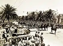Desfile alemão com blindados Somua S-35 e Hotchkiss H 38 no Champs-Élysées, em Paris, 1941.