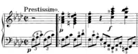 O movimento termina depois de duas sequências de notas descendentes e uma série de acordes em fortissimo.