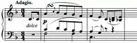 O segundo movimento apresenta uma dificuldade muito comum em movimentos lentos - a execução da ornamentação. Vários trinados, mordentes e appogiaturas recheiam a melodia desse segundo movimento. A tonalidade do segundo movimento é Fá Maior (em contraste com Fá menor do primeiro). As passagens melódicas apresentadas na melodia também criam uma atmosfera quase que fantasiosa.