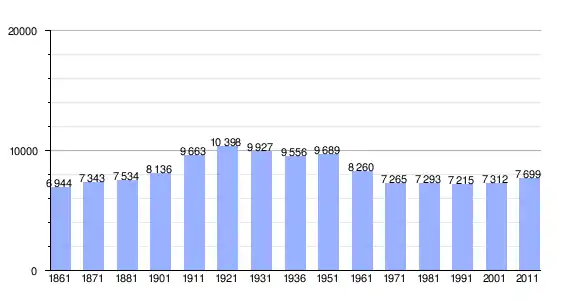 | Variação demográfica do município entre 1861 e 2011[3] |