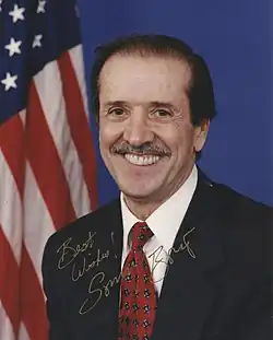 Ele morreu de ferimentos ao atingir uma árvore enquanto esquiava no Heavenly Ski Resort próximo a South Lake Tahoe, na Califórnia.[1][2] Sua viúva Mary foi escolhida para ocupar o seu mandato no Congresso, que ainda não havia acabado. Desde então ela resolveu seguir a carreira de senadora e concorreu com sucesso à eleição. Ela continua a batalhar por muitas das causas defendidas por seu marido, incluindo a luta em progresso de como melhor salvar o lago Salton.