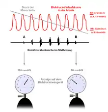 Os sons de Korotkov só são audíveis com recurso a um esfigmomanómetro. Os sons ouvidos durante a medição não são os mesmos que aqueles produzidos pela vibração dos ventrículos no coração, e quando se coloca um estetoscópio sobre a artéria braquial não há nenhum som que seja audível. Quando se coloca o manguito do esfigmomanómetro no braço de um paciente e é insuflada a uma pressão superior à sua pressão arterial sistólica, não há ainda qualquer som audível. Isto ocorre porque a pressão do manguito é suficientemente alta que abafa por completo a pressão sanguínea. À medida que a manguito é esvaziado, no momento em que atinge o mesmo valor de pressão que a pressão sistólica do paciente, é audível o primeiro som de Korotkov (k1). À medida que o manguito continua a ser esvaziado, continuam-se a ouvir sons até à sua pressão ser coincidente com os valores de pressão diastólica do paciente (k2,k3,e k4), momento em que deixam de se ouvir sons (k5).