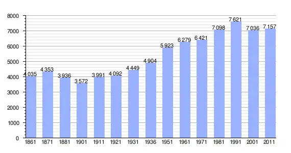 | Variação demográfica do município entre 1861 e 2011[3] |