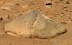 10) A primeira rocha que o Spirit analisou foi denominada de Adirondack. Ela era do tamanho de uma bola de futebol. Em 6 de fevereiro, o Spirit com o auxílio da ferramenta de abrasão (RAT), efetuou a primeira abrasão em uma rocha de Marte, limando uma área de 45.5 milímetros de diâmetro.
