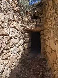 O túmulo, situado no meio de um olival, tem 4,3 metros de diâmetro e 4,8 m e altura no interior. A entrada tem 2,3 m de altura e acima do lintel tem um triângulo em relevo. O dromo, com 20,8 m de comprimento, está dividido em duas partes, uma delas com mais 6,3 m do que a outra e com mais uma camada de pedras, o que a torna mais alta. A meio do dromo há um poço pouco profundo a meio, escavado na rocha macia, com 1,1 por 0,7 m. Por estar vazio, desconhece-se se o poço foi usado com sepultura. A parte do dromo entre o poço e a entrada era pavimentada em pedra. No exterior, há outro pavimento com 4 metros de comprimento; pensa-se que este pavimento teria sido construído para que, ficando visível, indicasse o local onde começava o dromo.[4]