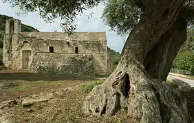 Nas imediações da aldeia, a nordeste da estrada para Megála Choráfia, encontra-se a igreja de Panagia Serviotisa, no mosteiro de Agios Ioannis (São João), situada no meio de laranjais. A igreja, apesar de ter o interior em muito mau estado, é um dos melhores exemplos da arquitetura bizantina em Creta. Foi construída no século XII, durante o segundo período bizantino,[a] e mostra influências de novas formas de arquitetura religiosa com origem em Constantinopla. A igreja tem uma planta em cruz grega com braços iguais e uma cúpula cujo tambor se encontra na interseção das duas alas. Foi parcialmente restaurada no início do século XXI, no âmbito de um programa de restauro de igrejas em toda a unidade regional de Chania.