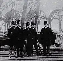 A equipe de projetistas da Torre Eiffel. Stephen Sauvestre está na esquerda, no centro Gustave Eiffel.