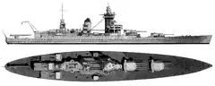 | Blindagem | Cinturão: 283 mm Convés: 115 a 125 mm Anteparas: 210 a 228 mm Torres de artilharia: 150 a 360 mm Torre de comando: 130 a 270 mm |