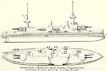 | Armamento | 4 canhões de 305 mm 10 canhões de 164 mm 8 canhões de 100 mm 22 canhões de 47 mm 2 canhões de 37 mm 4 tubos de torpedo de 450 mm |