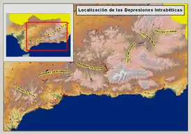 | Ficheiro:Espanha/relevo Localização aproximada do Sulco Intrabético em Espanha | |