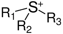 Um íon sulfônio é um íon enxofre portando três grupos alquila como substituintes positivamente carregados (S+R3). Compostos iônicos consistindo de um cátion sulfônio (positivamente carregado) e um ânion (negativamente carregado) são chamados sais de sulfônio.