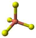 - 4 átomos de Cobre têm coordenação tetraédrica (ver ilustração).