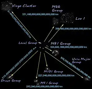 Uma anomalia gravitacional conhecida como Grande Atrator existe em alguma parte dentro do Superaglomerado Local.