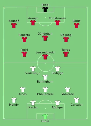 | Barcelona | Vencedor da La Liga de 2022–23 | 28 | Vencedor de 2022–23 | 14 | 11 | 2 |