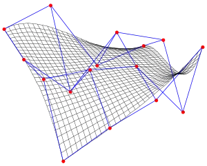 Superfícies de Bézier são uma espécie de Splines matemáticas usadas em computação gráfica, sistemas CAD, e modelagem por elementos finitos. Tal como acontece com as curvas de Bézier, as superfícies de Bézier são definidas por um conjunto de pontos de controle. Semelhante com a interpolação em muitos aspectos, uma das diferenças fundamentais é que uma superfície de Bézier em geral não passa pelos pontos de controle centrais, mas é "esticada" na direção de cada um deles como se houvesse uma força atrativa. O que é visualmente intuitivo, e conveniente para muitas aplicações matemáticas.[1]