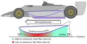 Para obter sustentação negativa, os carros de competição possuem kits aerodinâmicos, fazem parte deste kit a asa dianteira, asa traseira e passagens de ar embutidas em um kit de corpo especial para o carro.