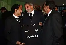| Túlio entregando camisa do Botafogo ao presidente Lula | ||