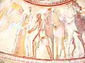 A tumba é parte de uma grande necrópole Trácia. Compreende um corredor estreito e uma câmara mortuária circular, ambas decoradas com murais representando trácios em um ritual funerário. O monumento data de antes do século IV e está protegido pela UNESCO como Patrimônio Mundial desde 1979. As paredes são memoráveis pelos esplêndidos cavalos e especialmente pelos gestos de adeus, nos quais uma dupla sentada segura o pulso um do outro em um momento de ternura e igualdade. As pinturas são as obras artísticas búlgaras mais preservadas do período Helenista.