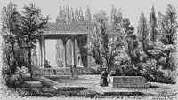 Em sua memória, uma pequena estrutura de cúpula foi erguida em Xiraz perto de seu túmulo em Golgast-e Mosalla em 1452 sob o comando de Babur ibn Baysunkur, um governador timúrido. O Golgast-e Mosalla eram jardins - agora conhecidos como Musalla Gardens - que aparecem na poesia de Hafiz. Com mais de 19 mil metros quadrados, os jardins também abriram um dos cemitérios de Xiraz, e Babur construiu uma lagoa ao mesmo tempo que o monumento. Acreditando que foram ordenados por presságios na poesia de Hafez, Abas o Grande e Nader Shah realizaram projetos de restauração em separado nos próximos 300 anos.[2]