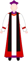 As túnicas usadas pelos Anglicanos são: a batina, a chamarra anglicana, o sobrepeliz e a alva. No Anglicanismo as batinas coloridas como também as demais vestes litúrgicas de cor branca tem suas origens nos professores da fé que se inspiraram em passagens bíblicas como (Êx 28:1-5. 39:27), (Lv 8:7,30. 16:4,32), (Ap 7:14), como também nas togas greco-romanas[1]