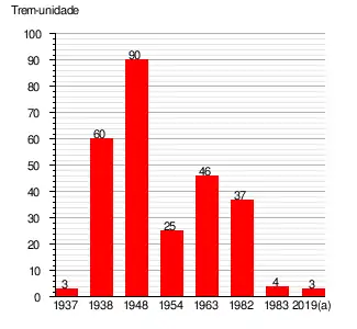O contrato original de fornecimento dos trens previu o fornecimento de 78 trens-unidade, sendo 78 carros motores e 156 carros reboques-totalizando 234 carros, com a entrega da primeira unidade em até 18 meses após a assinatura. Os carros foram fabricados pela Metropolitan-Vickers em Londres e transportados de navio para o Brasil. O primeiro trem foi entregue em dezembro de 1936, tendo efetuado sua primeira viagem de testes em 21 de dezembro daquele ano.[7]Até 1938 foram entregues 63 trens-unidade completos e peças para a construção/manutenção dos demais.[3]