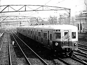 Um trem da Série 100 operando em Belo Horizonte, década de 1960.
