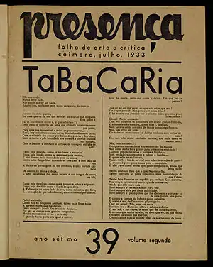 Tabacaria é um poema escrito em 15 de Janeiro de 1928 por Álvaro de Campos, heterônimo de Fernando Pessoa, publicado na Presença, em julho de 1933.