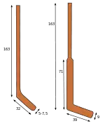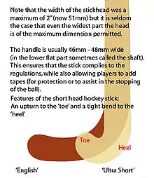 No hóquei, consta sempre de uma área mais longa e direita, entre o punho e a parte inferior, e da área de batimento propriamente dita, mais curta, chamada lâmina, ou blade. No hóquei em patins, tem uma forma semelhante a um J, com a lâmina curta e arredondada, enquanto que no hóquei no gelo se assemelha mais a um L, com uma lâmina mais longa e direita.