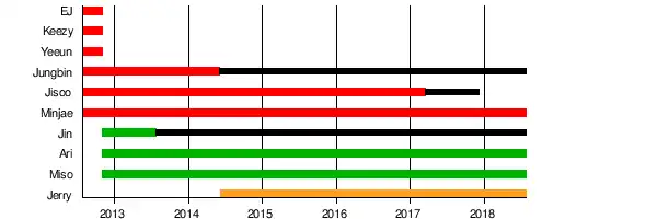 - Jungbin (em coreano: 정빈), nascida Yoon Jungbin (em coreano: 윤정빈) em 2 de abril de 1990 (34 anos).