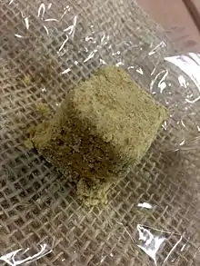 Seu consumo foi identificado no município de Caçapava e em algumas localidades próximas, em décadas passadas foi muito consumida por todos, das áreas rurais aos residentes das áreas urbanas, inclusive os soldados do Exército Brasileiros que prestavam serviço militar no batalhão da cidade e que eram originários de outros municípios da região; é utilizada para adoçar bebidas, a exemplo da rapadura, principalmente o café com leite, consumida também em pedaços tradicionalmente por aqueles que já conheciam seu sabor doce e o gosto do gengibre, sabor picante e forte com aroma característico.